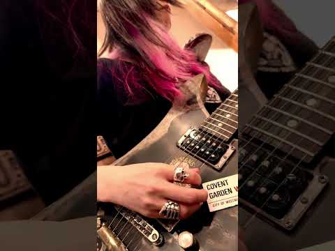 彼女の右手に輝くのはクレイジーピッグの名作『EVIL SKULL RING(MINI)』&『BONE HAND RING(LARGE)』、大のお気に入りとのことで、プライベートでもライヴでも着用いただいております。